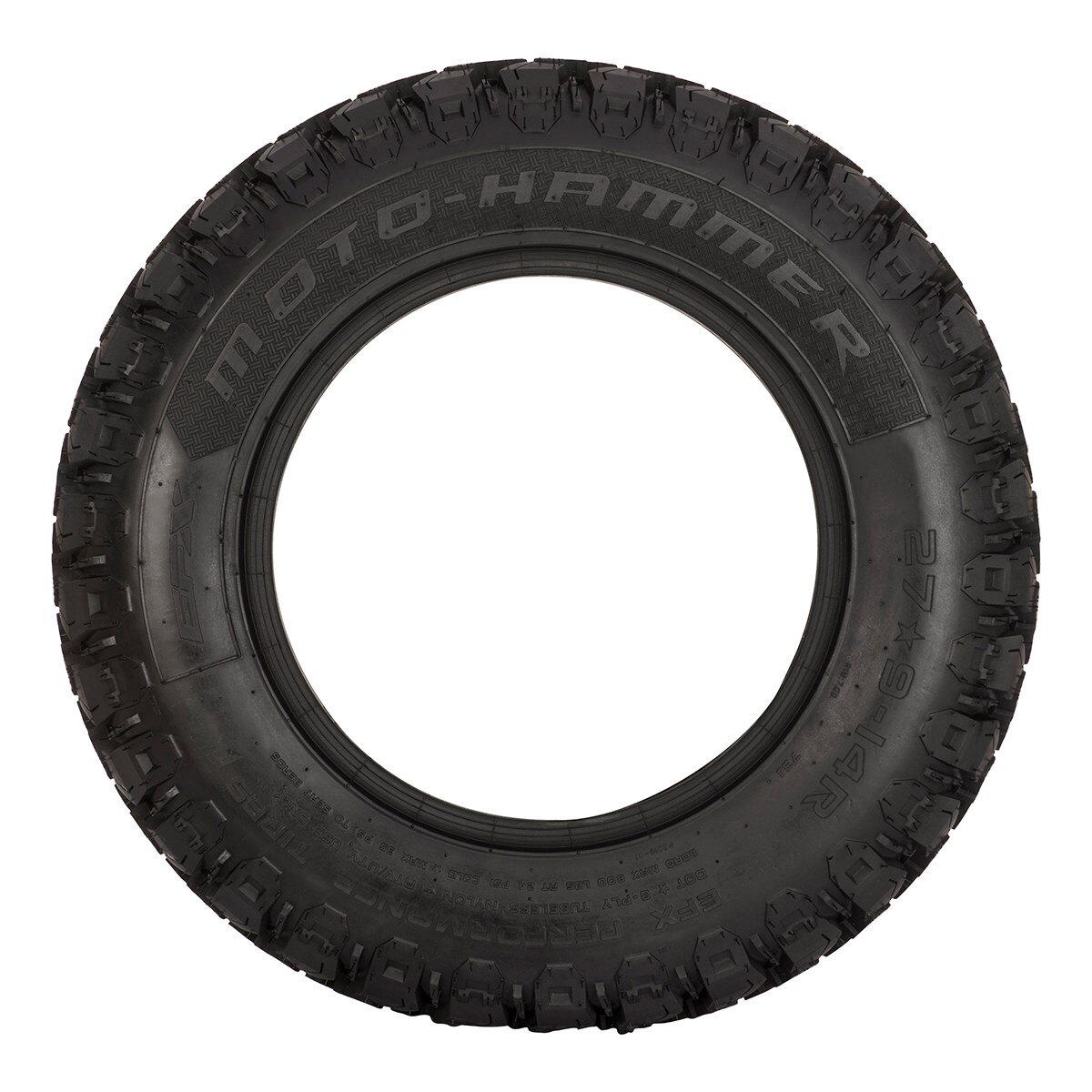 Superior hard pack traction control is not an easy feat to conquer. The MotoHammer tire boasts the best/largest contact patch, superior traction control, rugged 8-ply carcass and radial performance. The MotoHammer was also engineered with a shoulder tooth lug that grips and grabs when you need it most. Racers will appreciate the high-speed rating and radial technology, keeping you centred up and in control to punch the straightaways. Trail riders will love the 8-ply carcass and completely re-engineered soft compound that conforms to your terrain.
